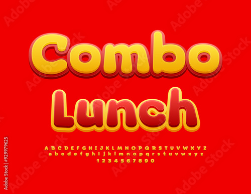 Vector bright promo Combo Lunch. Funny style Font. Red and Yellow Alphabet Letters and Numbers set