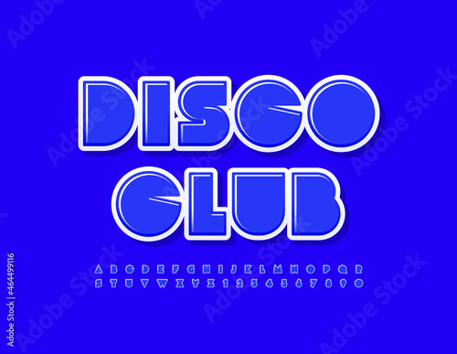 Vector bright Sign Disco Club. Stylish Blue Font. Bright Alphabet Letters and Numbers set