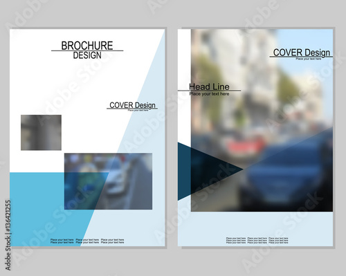 Vector brochure cover templates with blurred cityscape. EPS 10. Mesh background.