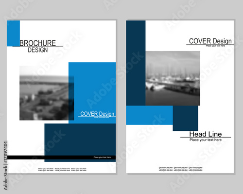 Vector brochure cover templates with blurred seaport. Business brochure cover design. EPS 10. Mesh background.