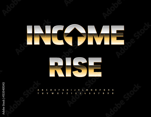Vector Business logo Income Rise. Trendy Premium Font. Shiny Golden Alphabet Letters and Numbers set.