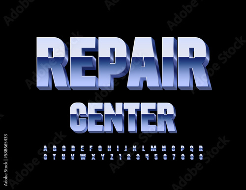Vector business logo Repair Center. 3D Chrome Font. Metallic set of Alphabet Letters and Numbers