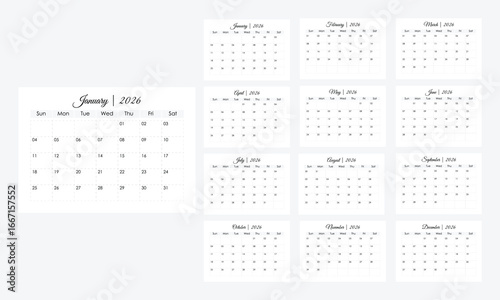 vector calendar, printable calendar, 2026 desk calendar, 2026 printable calendar vector