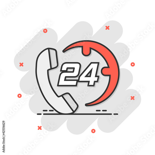 Vector cartoon technical support 24/7 icon in comic style. Phone clock help concept illustration pictogram. Computer service support business splash effect concept.