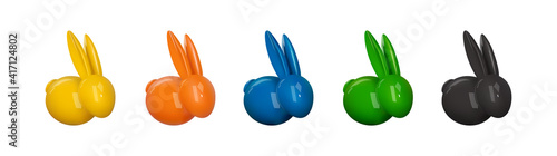 Vector ceramic Easter bunny set. Decorative realistic object for Easter Day.