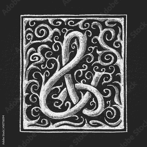 Vector chalk ampersand hand-drawn on grunge blackboard