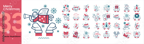 Vector Christmas and new year icon set. A collection of various scenes and situations on the theme of the New Year holidays. Concept illustration set.