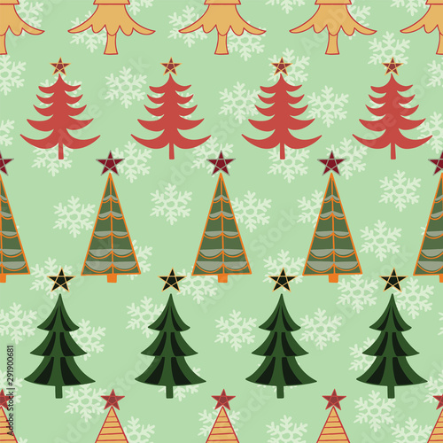 Vector Christmas Tree Seamless Pattern on green background