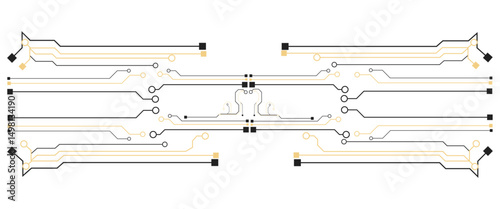 Vector circuit board elements on grid. Design elements for circuit board illustration