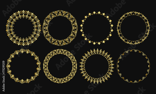 Vector circular golden floral wreaths set of floral round frames vector frame borders