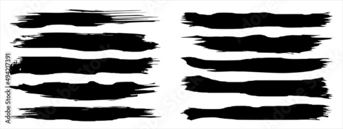 Vector collection of artistic grungy black paint hand made creative brush stroke set isolated on banner background. A group of abstract grunge sketches for design education or graphic art decoration