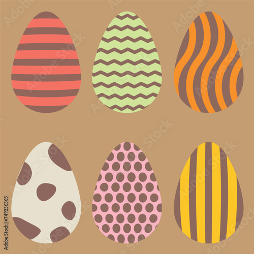 Vector Collection of colorful Easter eggs Set of pictures with ornaments in flat style