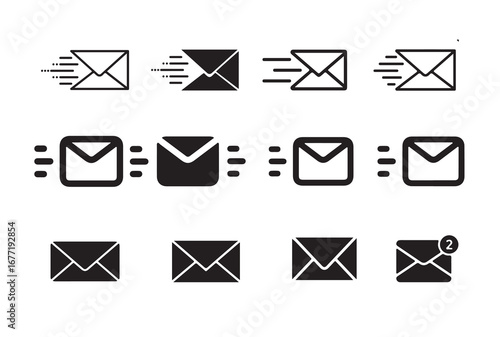 Vector Collection of Email Icons in Black and White for Digital Maps and Messaging