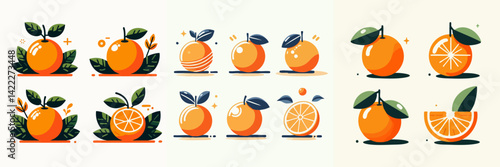 vector collection of orange fruit illustrations in various cut shapes and fresh and delicious looks