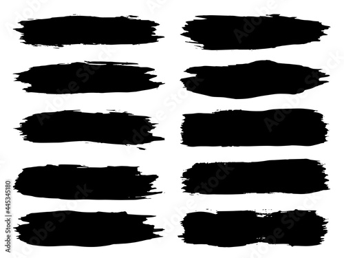 Vector collection or set of artistic black paint, ink or acrylic hand made creative brush stroke backgrounds isolated on white as grunge or grungy art, education abstract elements frame design