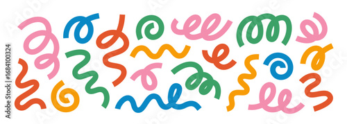 Vector Color Abstract Line Shape. Fun Confetti for Kid Birthday Party. Squiggle Color Wave Confetti Isolated on Background.