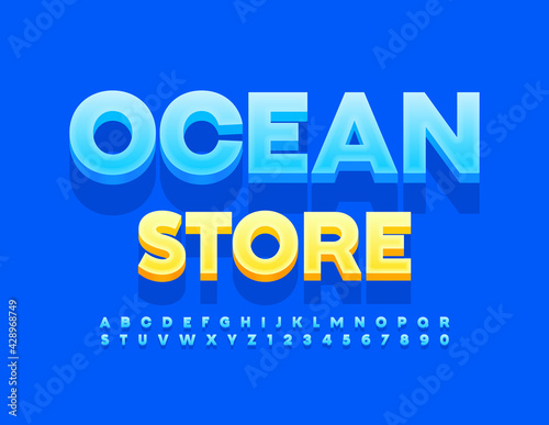 Vector colorful logo Ocean Store. Modern 3D Blue Font. Creative Alphabet Letters and Numbers