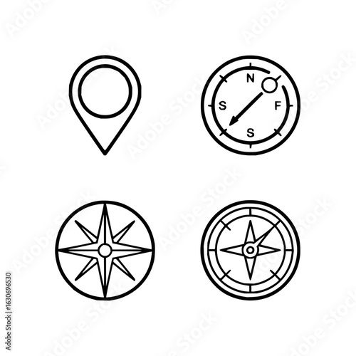 Vector compass navigation icon set for travel adventure and direction exploration with map pin design