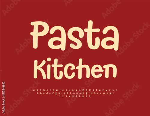 Vector Cooking label Pasta Kitchen. Fashion Cursive Font. Typography Minimal Alphabet Letters and Numbers set.