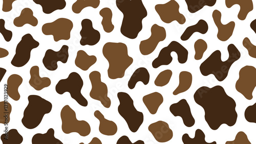 Vector cow print seamless pattern. Abstract brown irregular spots pattern. Minimalist cow skin texture with hand drawn design. Farm animal print