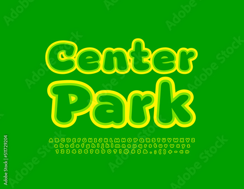 Vector creative emblem Center Park. Bright set of Alphabet Letters, Numbers and Symbols. Green and Yellow modern Font.