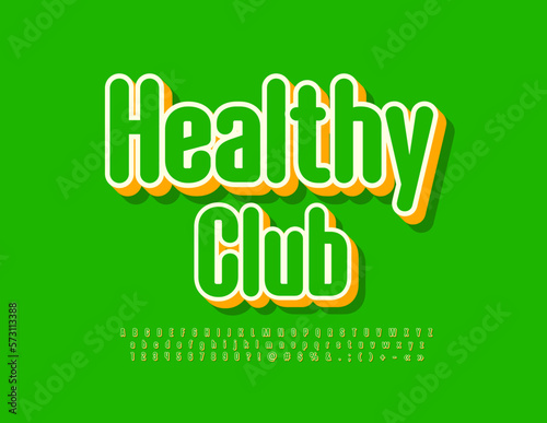 Vector creative Enblem Healthy Club. Green and Yellow 3D Font. Artistic Alphabet Letters, Numbers and Symbols