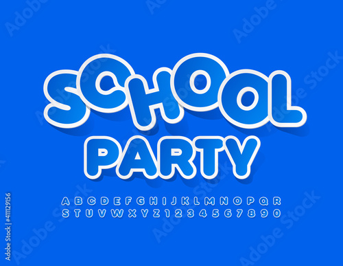 Vector creative flyer School Party. Blue trendy Font. Set of sticker Alphabet Letters and Numbers