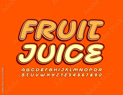 Vector creative logo Fruit Juice. Retro style Font. Decorative Alphabet Letters and Numbers set