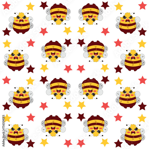 Vector cute cartoon bee seamless pattern background