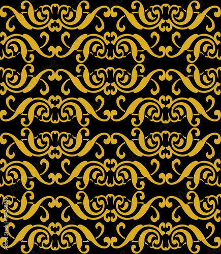 Vector damask seamless pattern background gold spiral vortex cross frame crest