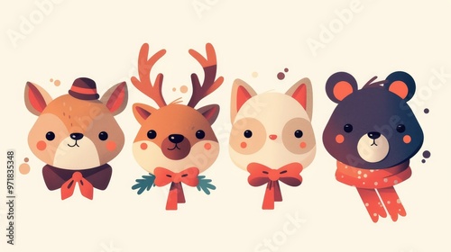 Vector design concept featuring animal character illustrations with four model heads suitable for greeting cards accessories keychains fabric printing and trendy wallpaper decor