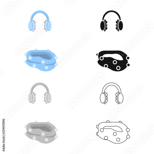 Vector design of earmuff and scarf sign. Collection of earmuff and blue vector icon for stock.