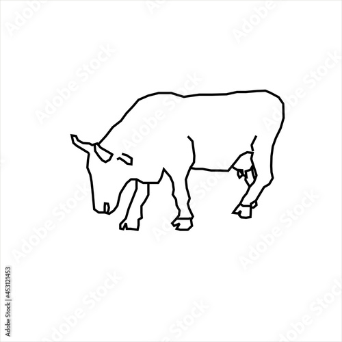Vector design sketch of a bull eating