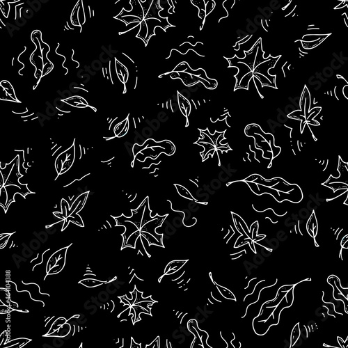 Vector doodle pattern in black and white. Leaves theme. All the objects are in different groups. Designs for notebook covers, gift wrapping, banners, social media backgrounds, postcards, textiles