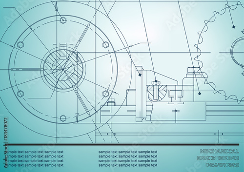 Vector drawing. Mechanical drawings on a light blue background. Engineering