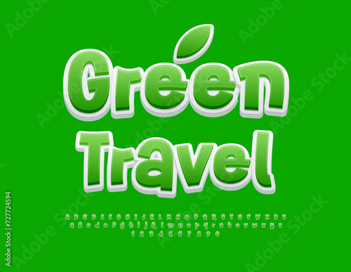 Vector Eco concept Green Travel. Funny Playful Font. Artistic Alphabet Letters and Numbers set.