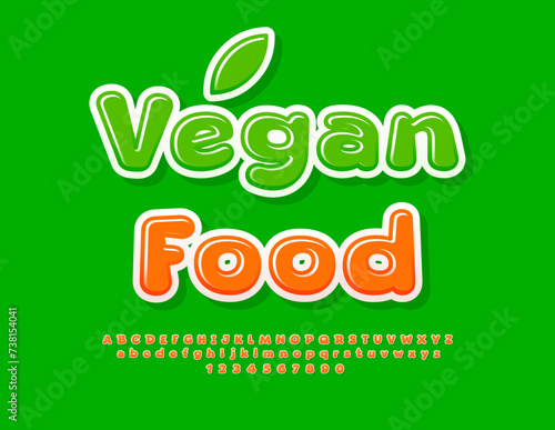 Vector eco concept Vegan Food. Creative Font. Bright Alphabet Letters and Numbers set.