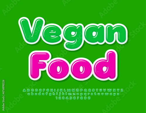 Vector eco concept Vegan Food. Glossy Green Font. Modern Alphabet Letters and Numbers set