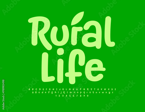 Vector eco template Rural Life. Funny Green Font. Playful Alphabet Letters and Numbers set.
