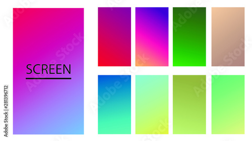 Vector EPS 10 Gradient Set. Different colors. Modern Smartphone screen, mobile app Template. Design for Wallpaper, background, banner, flyer, Social media post