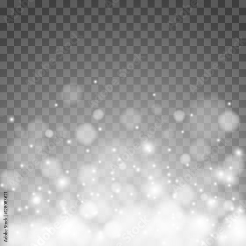 Vector falling snow effect isolated on transparent background with blurred bokeh.