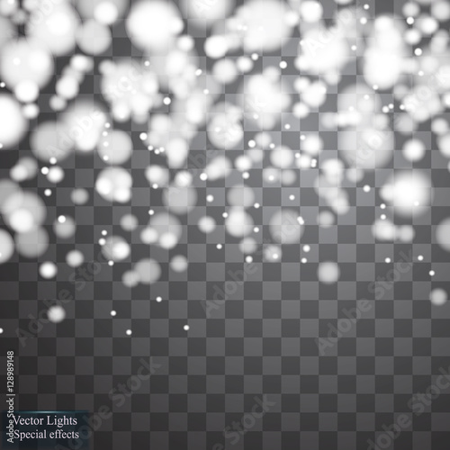 Vector falling snow effect isolated on transparent background with blurred bokeh