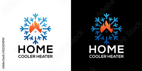 Vector fire logo with house and snow ice.