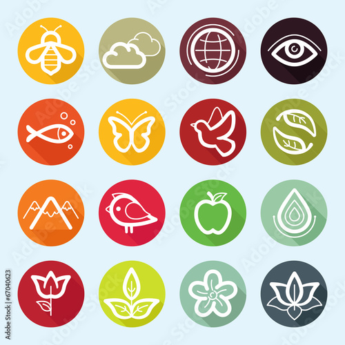 Vector flat icon set - nature, flora and fauna