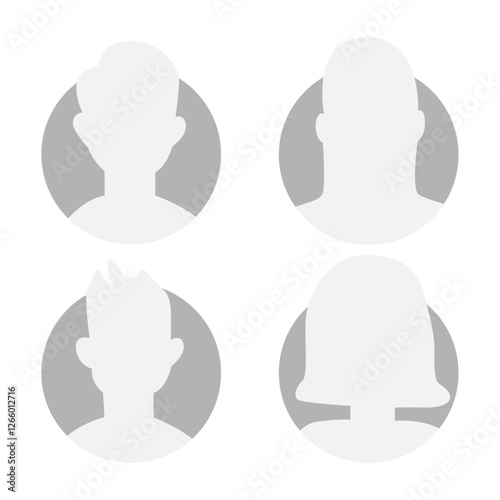 Vector flat illustration in grayscale. Icons of man and woman. Avatar, user profile, person icon, profile picture. Suitable for social media profiles, icons, screensavers and as a template.