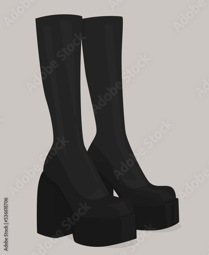 Vector flat image of autumn-spring women's shoes with heels. Women's boots in dark color. Warm shoes. Design for postcards, posters, banners, templates, textiles.