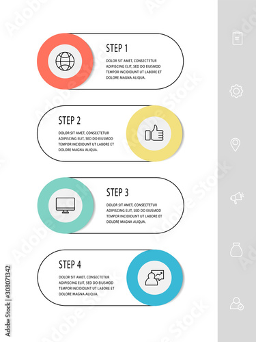 Vector flat template circle infographics. Business concept with 4 options and labels. Four steps for content, flowchart, timeline, levels