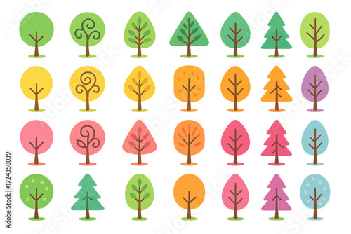 Vector Flat Tree and Foliage Icons Set