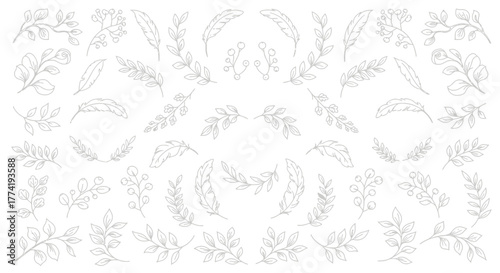 Vector Floral Illustration with Branches, Berries, Feathers, and Leaves — Nature Frame Icons Set