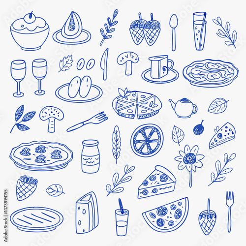 Vector Food Icons Set – Seamless Hand-Drawn Cake, Tea & Ice Cream Pattern